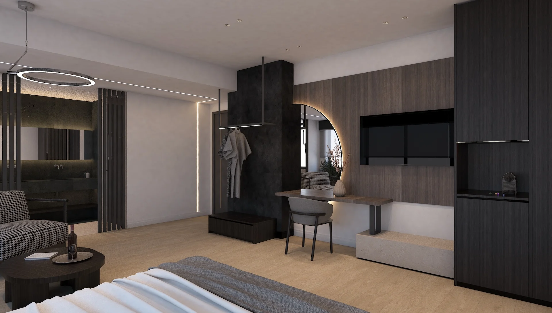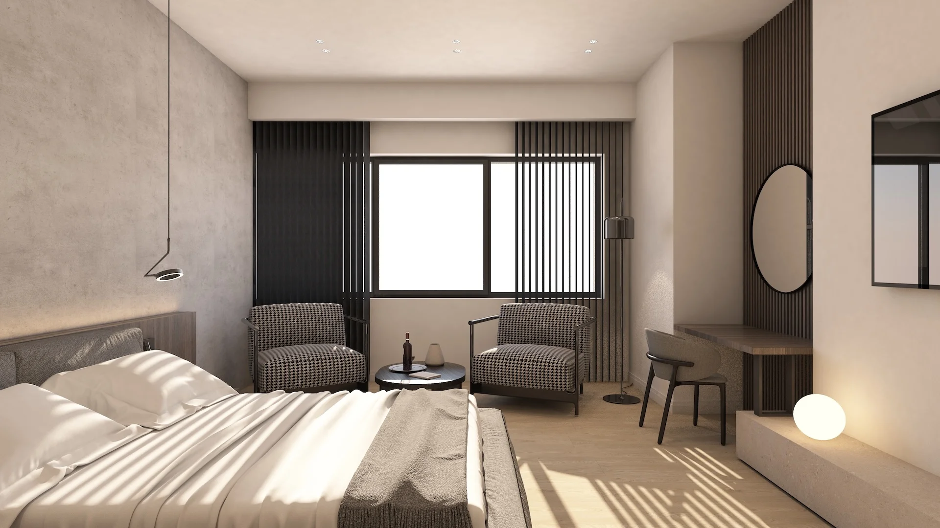 Οι Junior Suites είναι σχεδιασμένες με γνώμονα την ηρεμία και την άνεση. Απομακρυσμένες από τον κεντρικό δρόμο και με πλευρική θέα, προσφέρουν την ιδανική ισορροπία για επαγγελματικά ταξίδια ή solo επισκέπτες που θέλουν ένα μοντέρνο, γαλήνιο περιβάλλον.